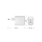 dbramante1928 - Cestovný adaptér re-charge GaN 2x USB-C, 2x 30 W, biela