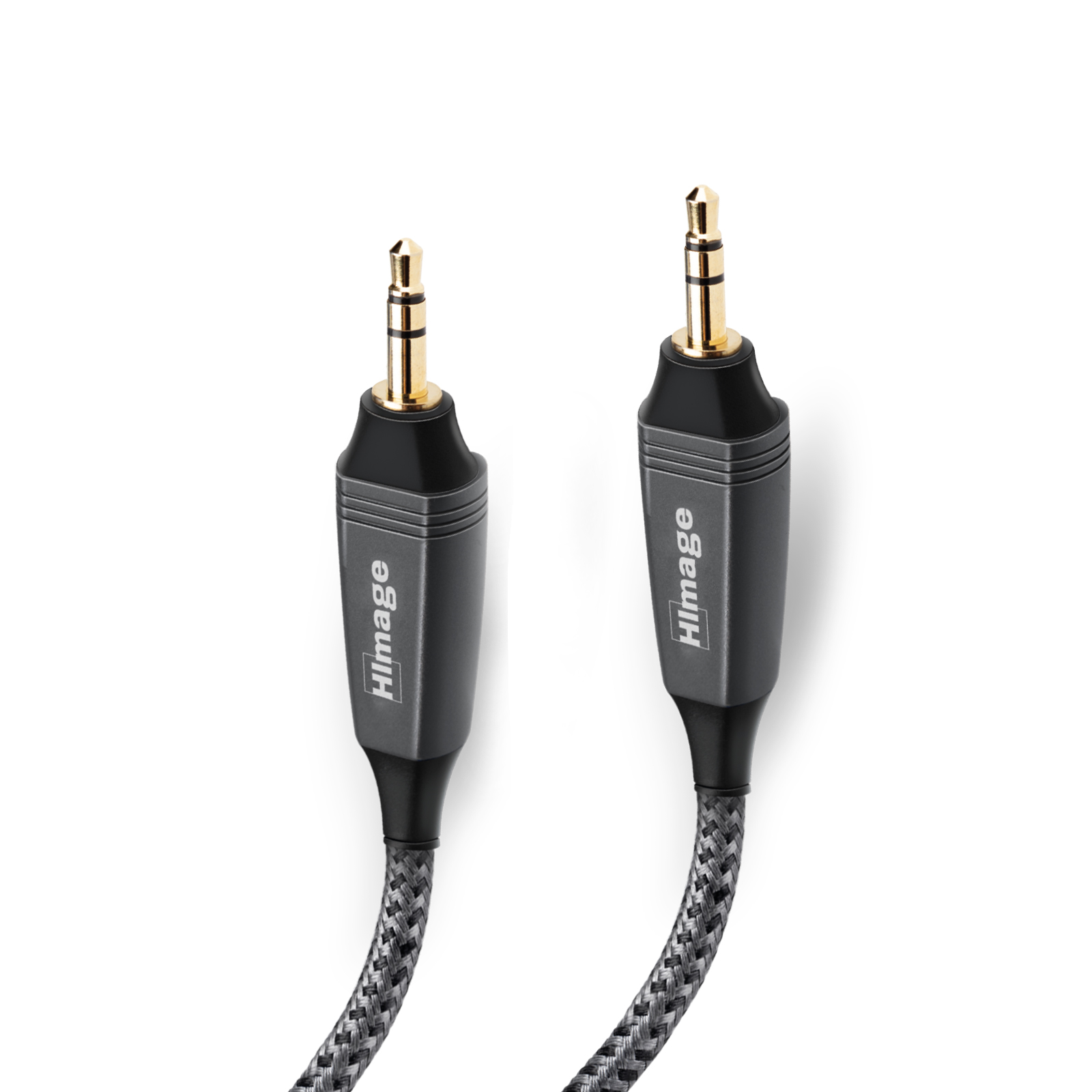Audio kábel značky HImage, s dvomi pozlátenými 3,5 mm jack stereo samec konektormi.