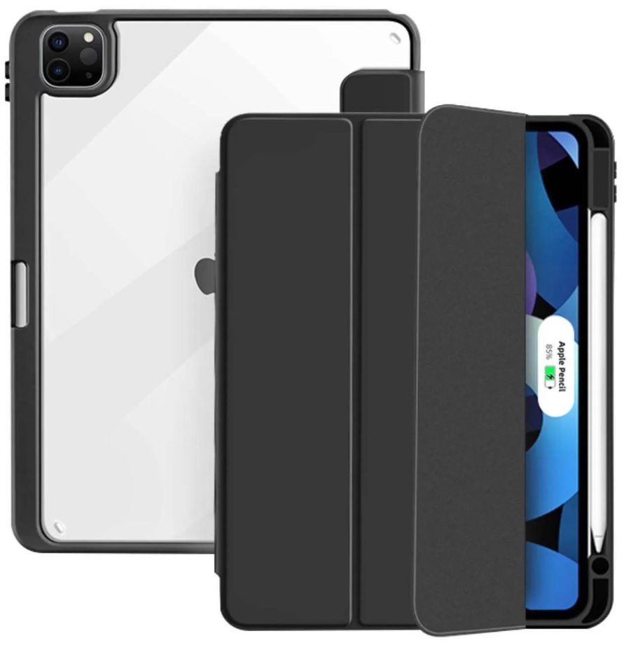 Puzdro Booklet Zeta Smart značky PURO pre iPad Pro 12.9''. Je dokonalým riešením na ochranu vášho zariadenia. Booklet Zeta Smart je vyrobené z kombinácie na dotyk mäkkého silikónu a odolného priehľadného PC. Okrem toho disponuje odnímateľnou a sklopnou magnetickou prednou klapkou. Puzdro je vybavené špecifickými krytmi, ktoré sa majú umiestniť a nasadiť do otvoru fotoaparátu. Vďaka tomu bude chrániť šošovky zariadenia, čím vytvára jeho kompletnú ochranu. V balení tak nájdete kryt pre každý kompatibilný model iPadu (iPad Pro 12,9” 2018 3. generácie, iPad Pro 12,9” 2020 4. generácie, iPad Pro 12,9” 2021 5. generácie, iPad Pro 12,9” 2022 6. generácie). Puzdro ďalej ponúka vyhradený otvore pre ceruzku Apple Pencil. Vďaka funkcii prebudenie/uspanie sa tablet po zatvorení puzdra automaticky prepne do režimu spánku a naopak. Funkcia stojana vám umožní bezproblémové sledovanie filmov alebo používanie spolu s klávesnicou.