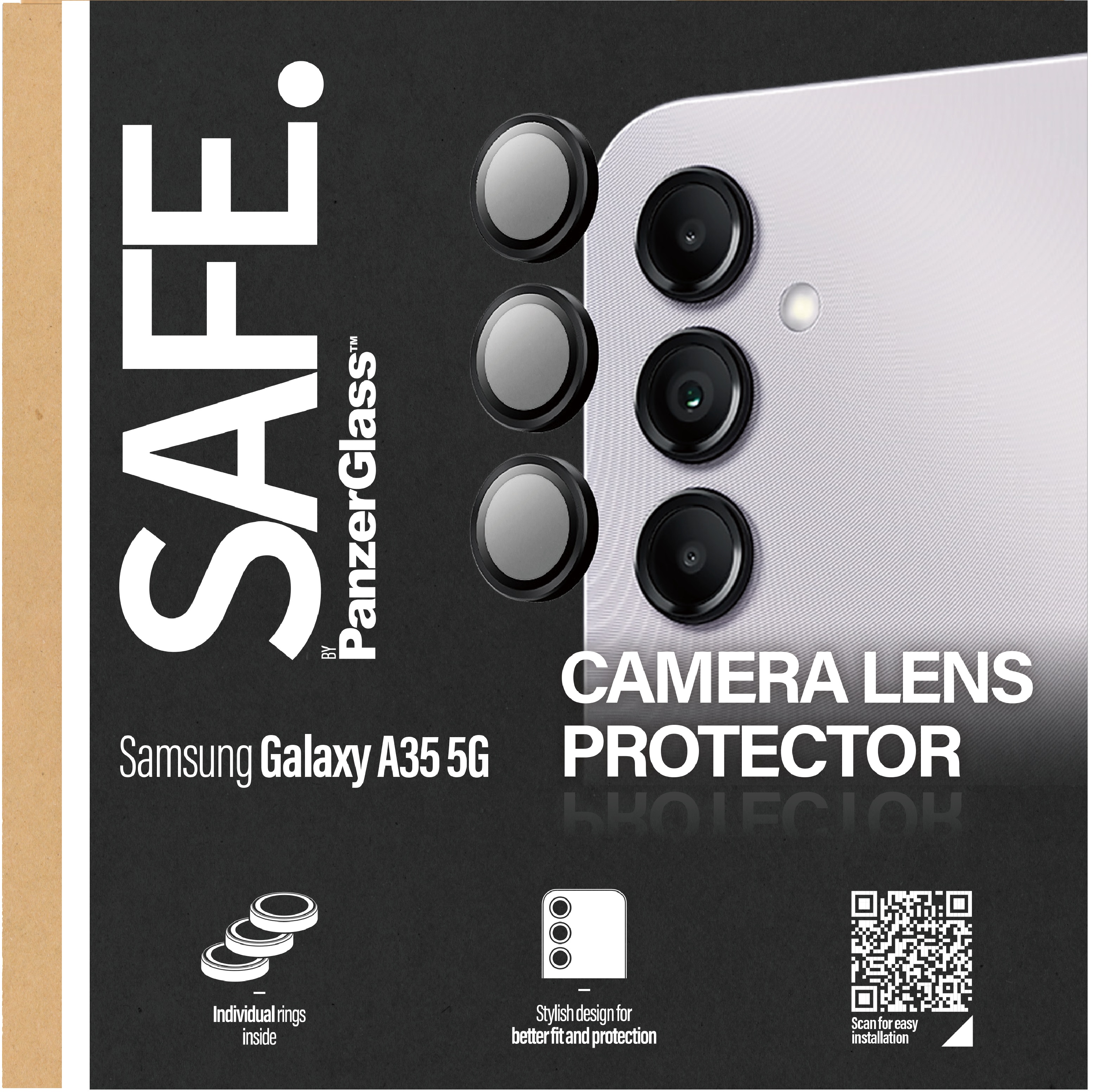 Ochranné kryty SAFE. majú podobu malých sklenených krúžkov, ktoré sú vyrobené z kvalitného japonského skla Asahi. Získajú si vás svojou vysokou odolnosťou, no zároveň malou hrúbkou a kompaktnou veľkosťou. Nijako tak nenarušia uhladený dizajn vášho Samsung Galaxy A34.