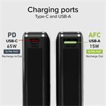 Technológia Adaptive Fast Charge cez 15 W USB-A port optimalizuje nabíjanie podľa typu zariadenia, čím chráni batériu a zabezpečuje maximálnu efektivitu. Pomocou USB-C portu s podporou Power Delivery (PD) až do 65 W môžete rýchlo a bezpečne dobiť aj notebook.