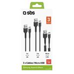 SBS - Sada troch káblov USB-A/Micro USB, 10 W, čierna