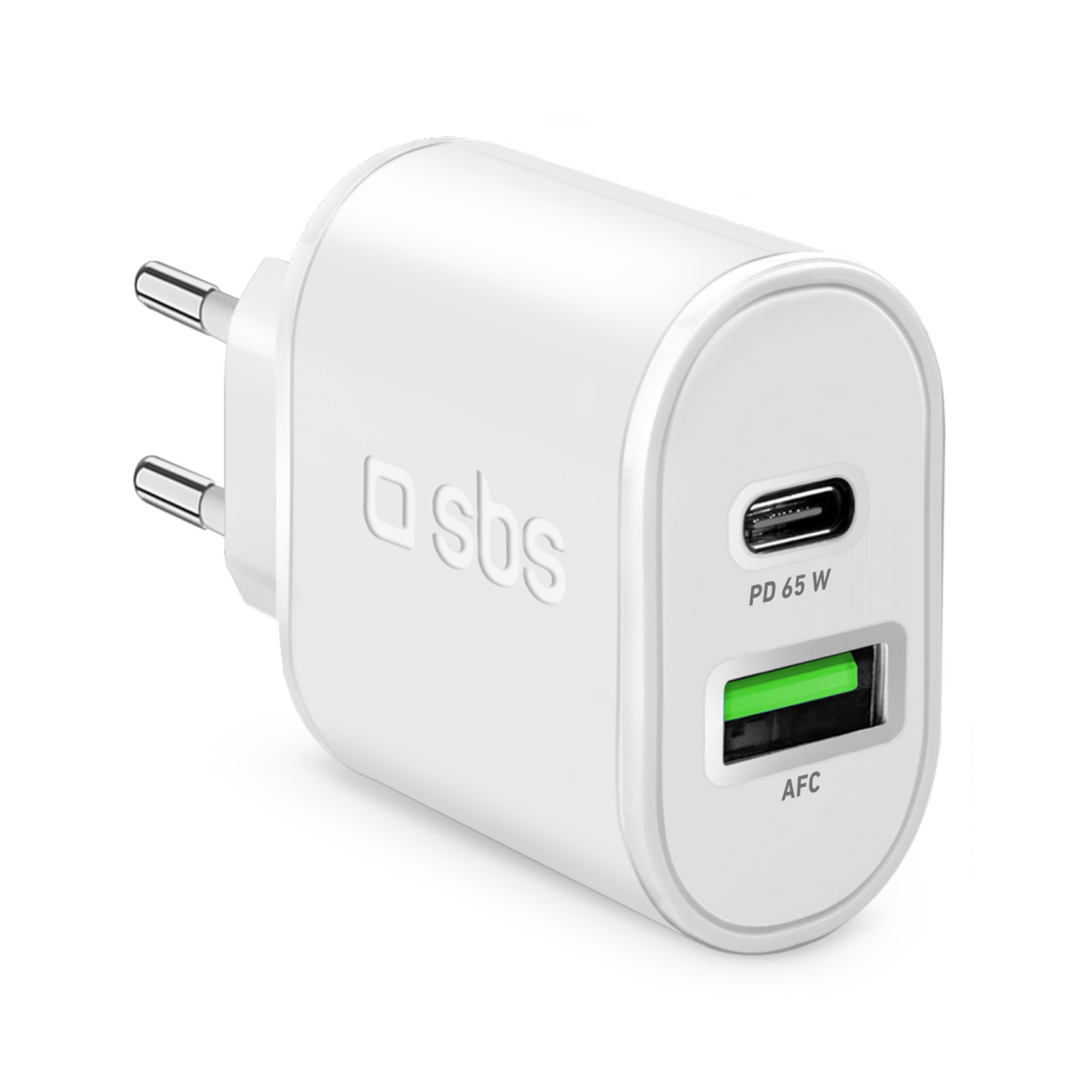 SBS - Cestovný adaptér GaN USB-A PD 65 W/USB-A AFC 18 W, biela