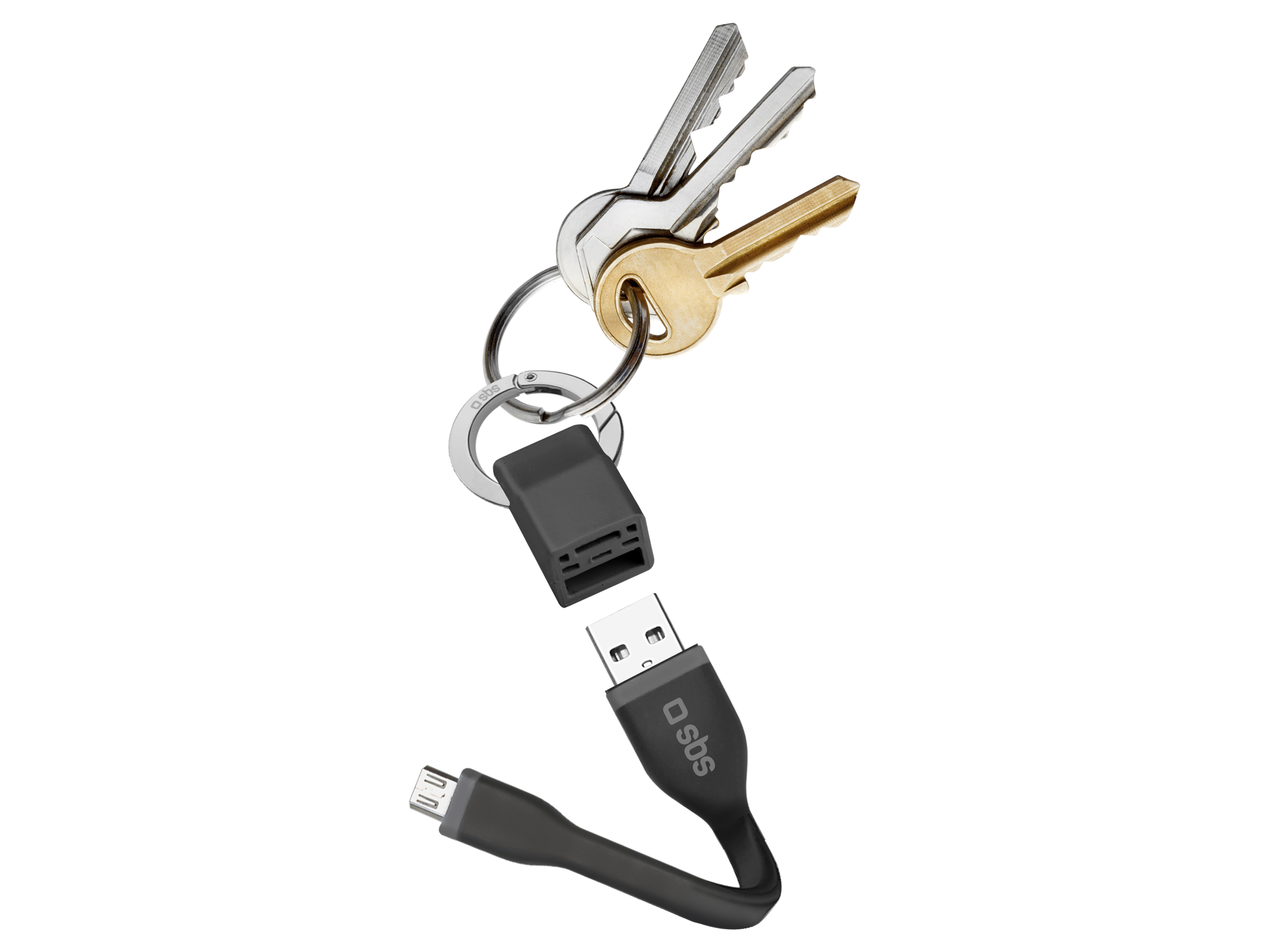SBS - Kábel USB-A/Micro USB, 5 W, s funkciou kľúčenky, 12 cm, čierna