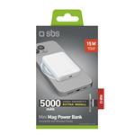 SBS - Bezdrôtová PowerBank 5000 mAh 15 W, Mini Mag, USB-C, PD, biela