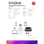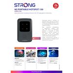 Prenosný 4G Portable Hotspot 150C značky STRONG poskytuje vysokorýchlostné internetové pripojenie cez 4G LTE s rýchlosťou sťahovania až 150 Mbit/s. Vďaka podpore Wi-Fi 2,4 GHz umožňuje zdieľanie internetu až s 10 zariadeniami súčasne. Vstavaná 2100 mAh batéria zaisťuje až 8 hodín prevádzky bez potreby nabíjania. Kompaktný dizajn a jednoduché použitie umožňujú rýchlu aktiváciu – stačí vložiť SIM kartu (nie je súčasťou balenia) ľubovoľného operátora a pripojenie je pripravené na používanie.