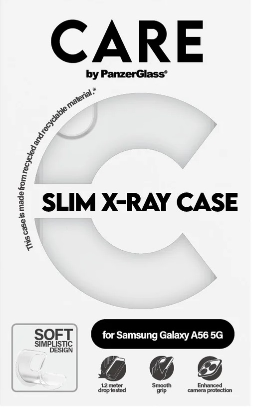 X-Ray značky CARE by PanzerGlass™ je ochranné puzdro, ktoré spája štýl a funkčnosť v jednej cenovo dostupnej voľbe. Vďaka jemnému a tenkému dizajnu necháva vyniknúť farbu vášho Samsung Galaxy A56, pričom spoľahlivo chráni pred pádmi a škrabancami. Je vyrobený zo 100 % recyklovaného plastu, má príjemný úchop a je plne kompatibilný s bezdrôtovým nabíjaním aj s ochranným krytom fotoaparátu.