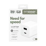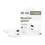 empower - Cestovný adaptér Grand Prix USB-C/USB-A, GaN, 35 W PD, striebornobiela
