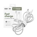 empower - Kábel USB-C, 240 W, Racing, 2 m, striebornobiela
