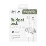 empower - Kábel USB-C, 60 W, Racing, 2 m, striebornobiela