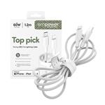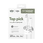 empower - Kábel USB-C/Lightning, 60 W, Racing, 1,2 m, striebornobiela