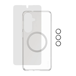 Ochranný balík Privacy 3 v 1 od PanzerGlass®, ideálny pre každého, kto je stále v pohybe a potrebuje kompletnú ochranu v jednom balení. Obsahuje ochranné sklo Privacy Ultra Wide Fit vyrobený zo 60 % recyklovaného skla s privacy filtrom, ktorý chráni displej pred škrabancami, nárazmi a nechcenými pohľadmi. V balení sa ďalej nachádza ochrana šošoviek fotoaparátu Hoops® a puzdro Urban Combat značky CARE by PanzerGlass®, extrémne odolné voči pádom až do 3,6 metra, vyrobené z recyklovaného plastu so zárukou proti zožltnutiu na jeden rok.