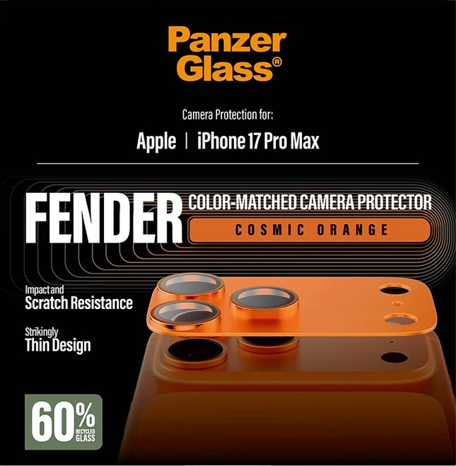 PanzerGlass - Ochranný kryt objektívu Fender pre iPhone 17 Pro Max, oranžová