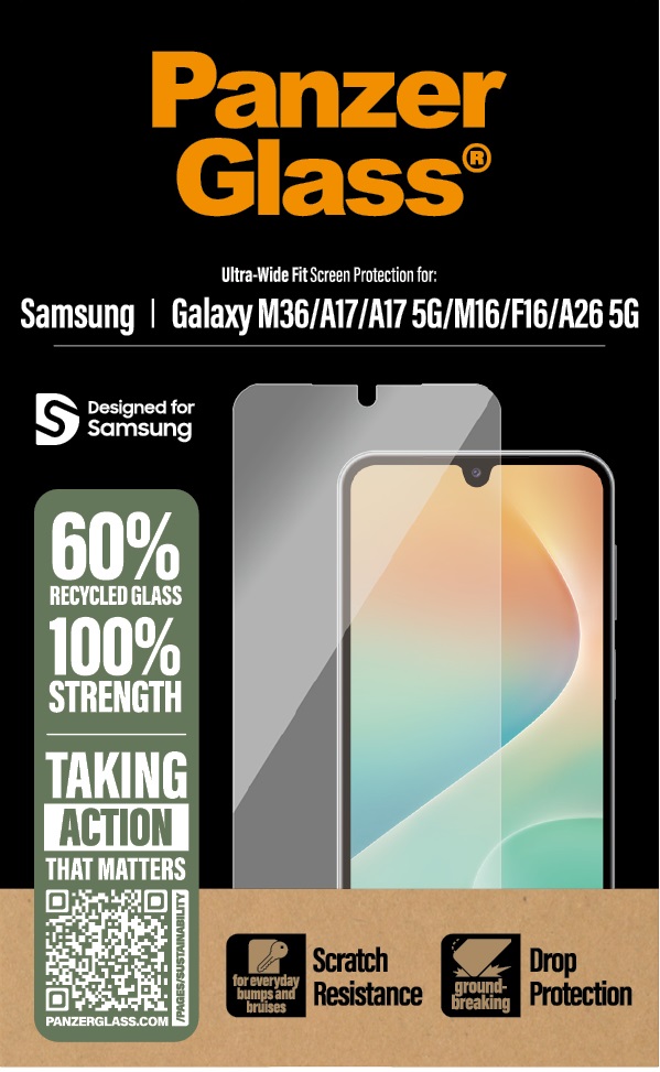 Ochranné sklo PanzerGlass™ pre Samsung Galaxy prichádza s revolučným zložením. Až zo 60 % je tvorené recyklovaným sklom, vďaka čomu je ekologickejšie ako kedykoľvek predtým. Zároveň si však stále zachováva nekompromisnú odolnosť. Pri výrobe je temperované v peci, nie chemicky, pri teplote 500 °C po dobu 5 hodín.