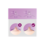 Kryty na bradavky sú k dispozícii v dvoch veľkostiach, aby sa lepšie prispôsobili prsníku. Malé kryty sa hodia na bradavky s priemerom od 12 mm a stredné do 21 mm. Ak chcete zistiť svoju veľkosť, urobte si pohodlie a dajte si na bradavku jeden z dierovaných krúžkov. Otáčajte kryt v smere hodinových ručičiek a zasuňte bradavku do výčnelku. Potom roztiahnite spodnú časť krytu okolo dvorca. Ak je medzi bradavkou a silikónom priestor 2 mm, je to správna veľkosť.