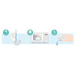 Kryty na bradavky je potrebné pred každým použitím vyčistiť. Zaberie to menej ako 10 minút. Vložte ich do vriacej vody na päť minút alebo použite hygienické puzdro. Dobre opláchnuté kryty na bradavky vložte do puzdra a vlejte 25 ml (0,9 fl. oz.) vody. Dajte ich do mikrovlnnej rúry na 750 – 1000 W po dobu troch minút. Potom ich nechajte vychladnúť asi päť minút. Vysušte ich a sú pripravené na použitie. Hygienické puzdro je vhodné na cesty, ako aj na uskladnenie krytov na bradavky, aby ostali čisté.