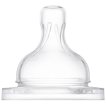 Tvar cumlíka je navrhnutý tak, aby podporoval pevné prisatie. Rebrovaná textúra zabraňuje jeho vťahovaniu do fľaše, čo umožňuje dieťaťu kŕmiť sa bez prerušení. Táto kombinácia tvaru a textúry zabezpečuje stabilitu počas kŕmenia a znižuje riziko frustrácie u dieťaťa.