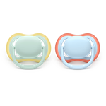 Cumlík Philips Avent ultra air je vyrobený zo 100 % potravinárskeho silikónu, ktorý je mäkký, odolný a trvácny. Ortodontický tvar podporuje prirodzené pohyby svalov v ústach a pomáha znižovať riziko vzniku chybného chrupu. Úzky kŕčok cumlíka znižuje tlak medzi jazykom a podnebím. Cumlíky sú akreditované nadáciou Oral Health Foundation a neobsahujú BPA, BPS, ftaláty, PVC ani škodlivé látky.