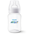 Fľaša Philips Avent Anti-colic je vyrobená z polypropylénu bez obsahu BPA. Cumlíky sú dostupné s rôznymi prietokmi, ktoré sa prispôsobujú rastu dieťaťa. Z hygienických dôvodov sa odporúča ich výmena každé 3 mesiace. Fľaša je plne kompatibilná s radom Anti-colic, vrátane verzie s ventilačným otvorom AirFree, a možno ju kombinovať s odsávačkou mlieka, fľašou a dielmi pohára podľa aktuálnych potrieb.