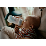 Philips Avent Natural Response fľaša s ventilom AirFree je navrhnutá tak, aby podporovala prirodzený rytmus pitia dieťaťa. Cumlík sa chová ako prsník – uvoľňuje mlieko len vtedy, keď dieťa aktívne pije. To umožňuje dieťaťu piť, prehĺtať a dýchať vlastným tempom, čím sa napodobňuje dojčenie a uľahčuje kombinácia dojčenia a kŕmenia z fľaše.