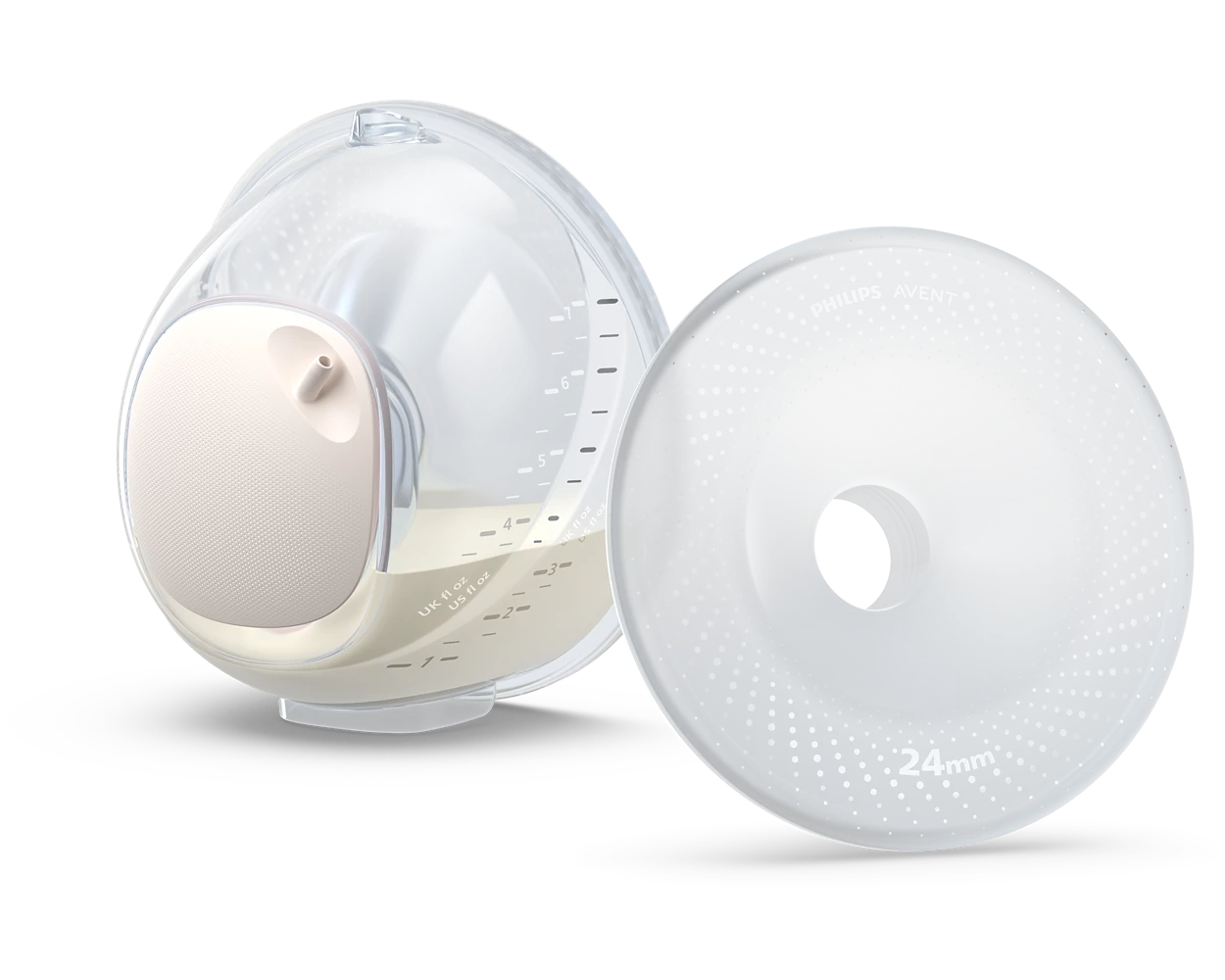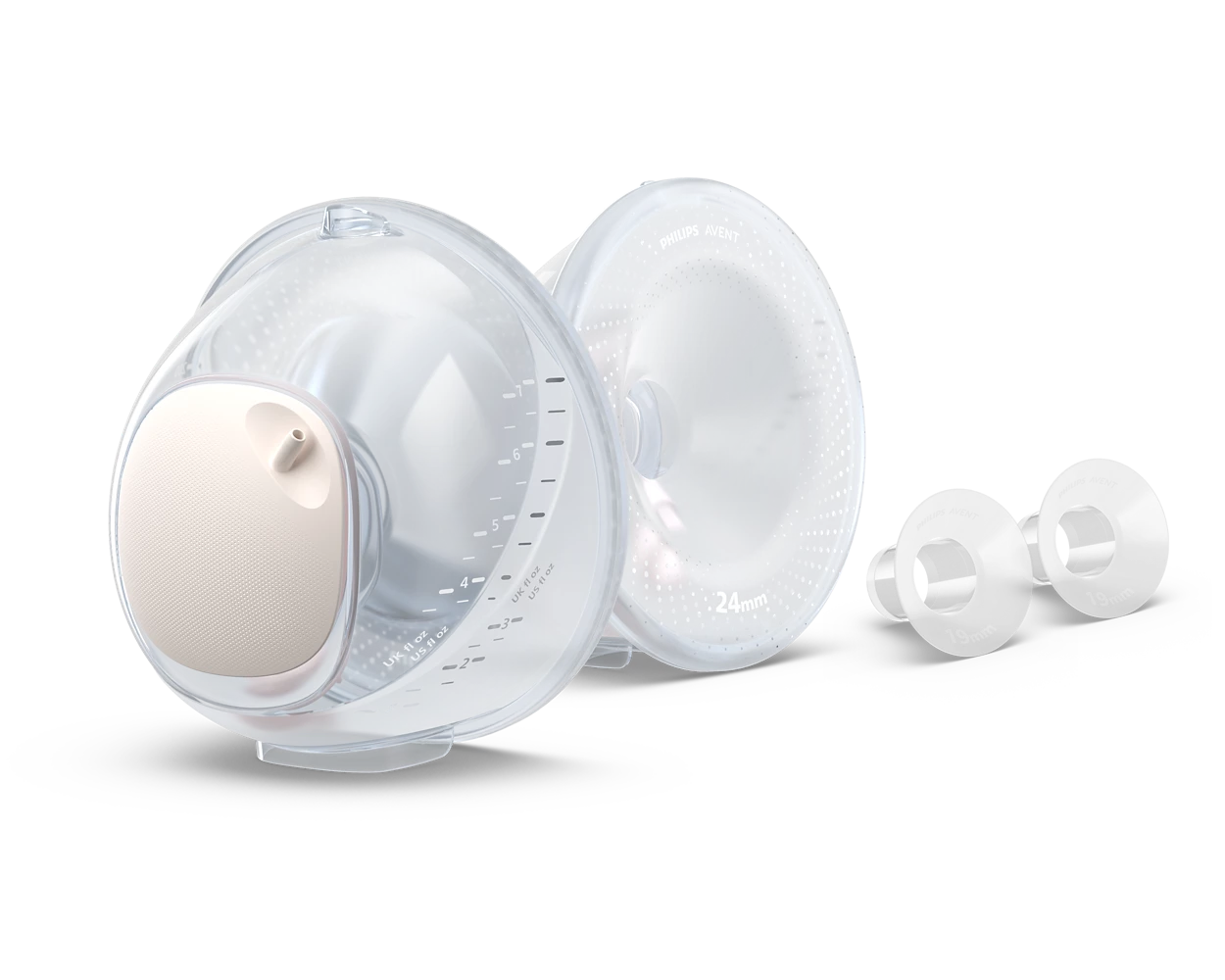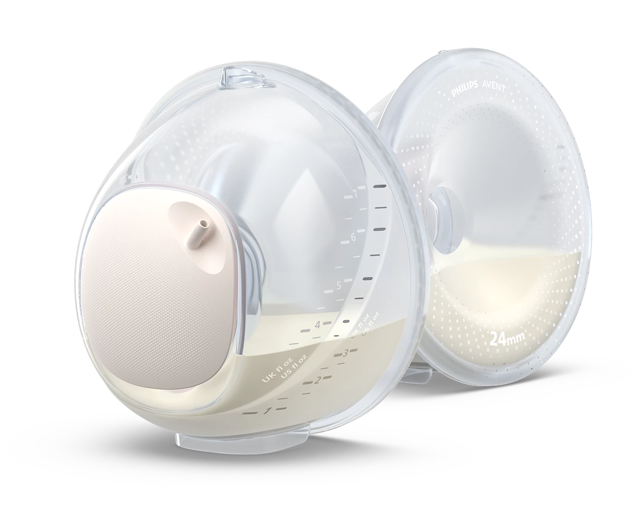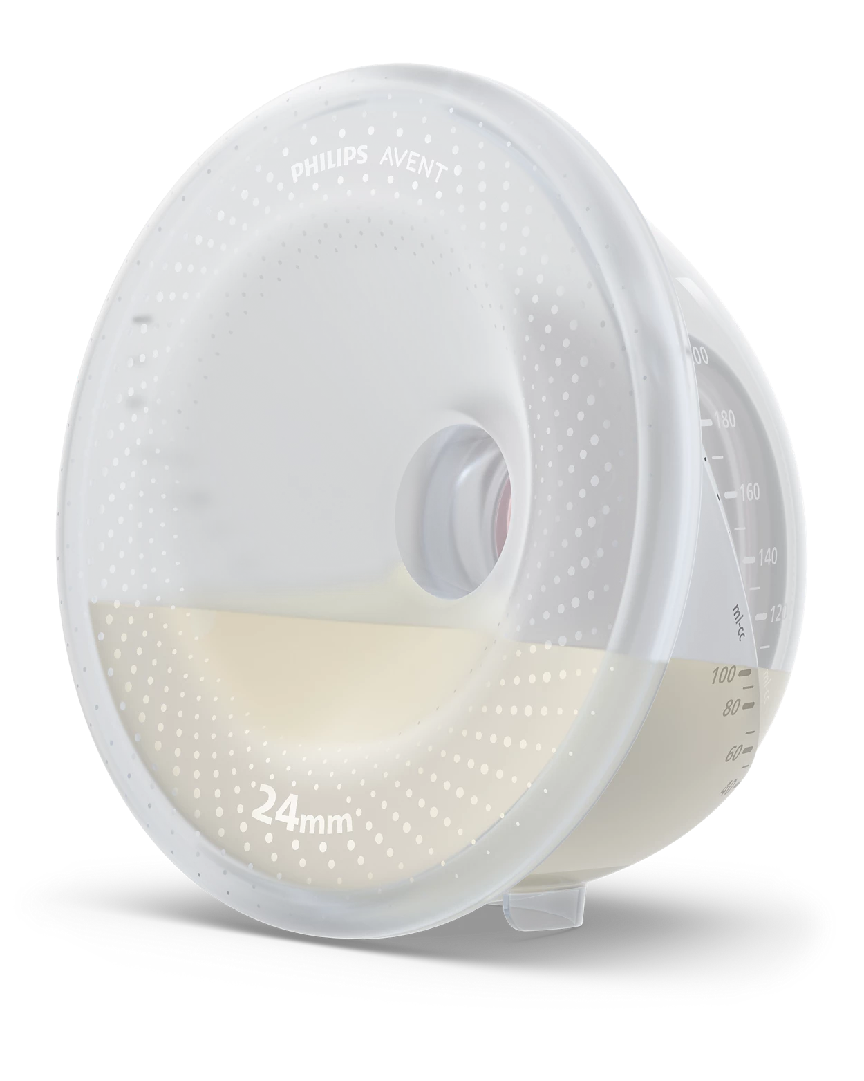 Priehľadné poháriky na zachytávanie mlieka poskytujú voľný pohľad dovnútra. Pomôžu vám správne umiestniť bradavky, aby ste dosiahli čo najlepšie odsávanie, a vizuálne sledovať objem materského mlieka. Tým sa zaistí spoľahlivé odsávanie od prvej kvapky po poslednú.
