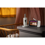 Rodičovská jednotka ponúka až 12 hodín prevádzky na jedno nabitie, čo umožňuje sledovanie počas celého dňa. Funkcia obojsmerného hovoru vám umožní hovoriť s dieťaťom a počúvať ho súčasne. Zabudovaný izbový teplomer s výstrahou pomáha udržať optimálne podmienky v izbe. Monitor je možné namontovať na stenu alebo postieľku pomocou držiaka 2 v 1.