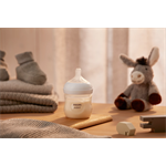 Fľaše majú široké hrdlo, ktoré uľahčuje plnenie aj čistenie. Vďaka malému počtu dielov je montáž rýchla a jednoduchá. Ergonomický tvar fľaše umožňuje pohodlné držanie v rôznych uhloch – či už rodičom, alebo samotnému dieťaťu. Tento praktický dizajn zvyšuje komfort pri každom kŕmení.