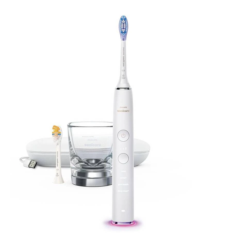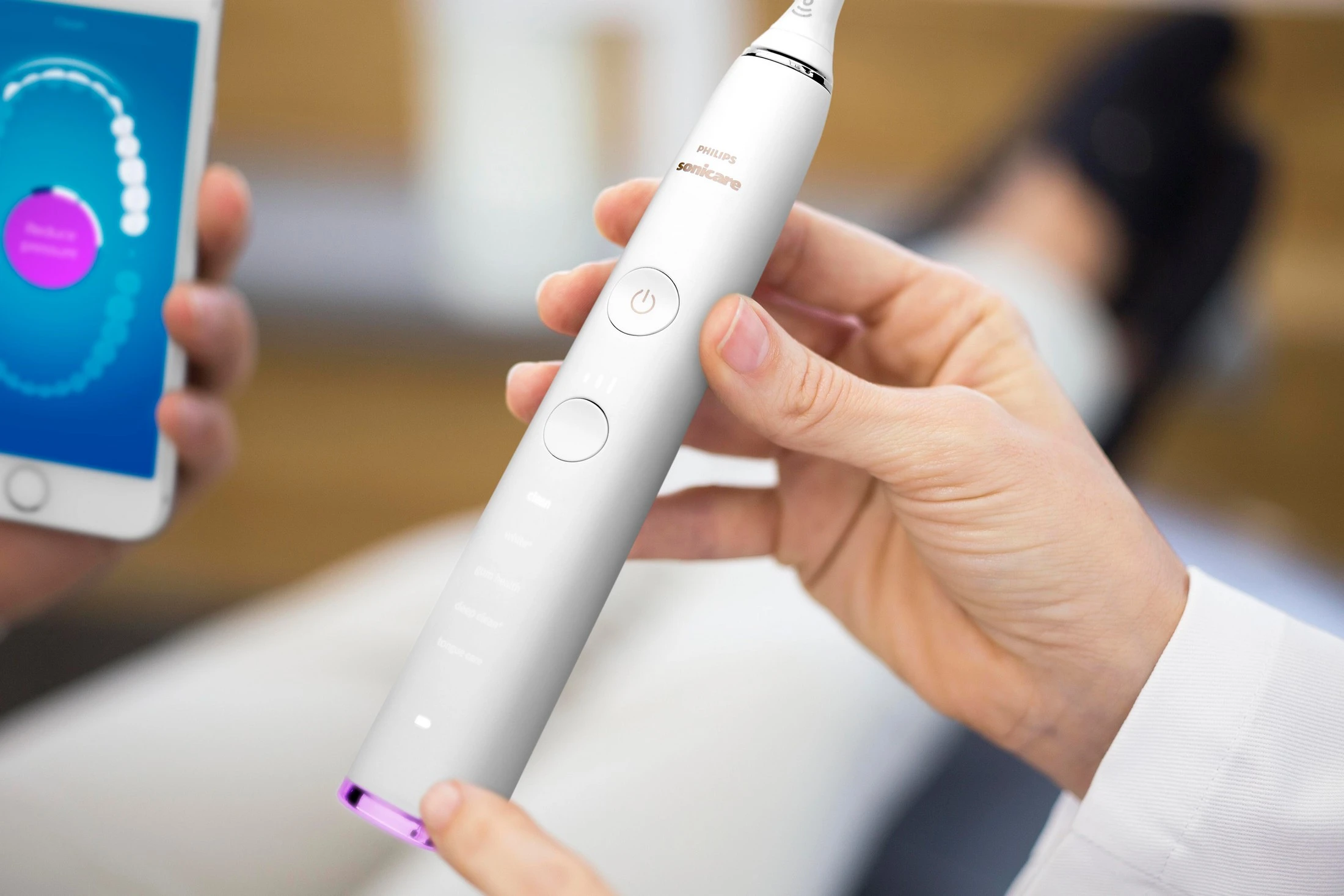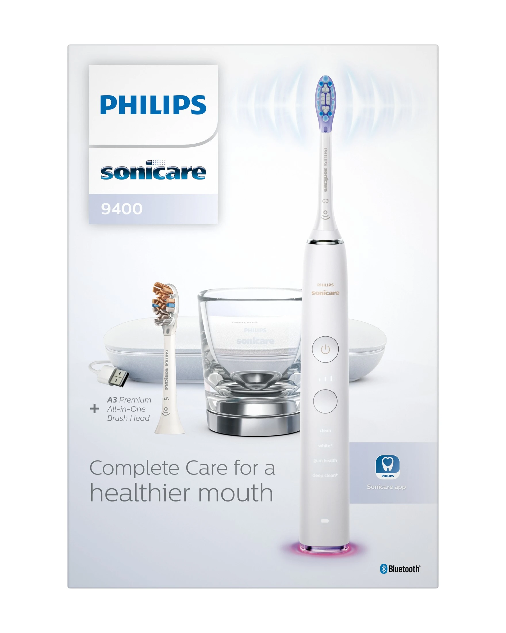 Philips Sonicare DiamondClean 9400 je výkonná sonická zubná kefka, ktorá sa vďaka prepojeniu s aplikáciou Sonicare stáva vaším osobným dentálnym poradcom. Aplikácia sleduje vaše návyky pri čistení, poskytuje spätnú väzbu v reálnom čase a odporúča konkrétne kroky na zlepšenie techniky. Vďaka tomu dosiahnete zdravšiu ústnu dutinu a efektívnejšie čistenie.