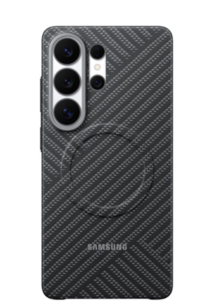 Puzdro Carbon Magnetic značky Samsung poskytuje spoľahlivú ochranu v elegantnom a tenkom vyhotovení zo syntetického uhlíkového vlákna, ktoré zvyšuje odolnosť voči nárazom a poškriabaniu a zároveň dodáva telefónu luxusný vzhľad. Vstavané magnety udržia zariadenie pevne na mieste a umožňujú jednoduché pripájanie magnetických doplnkov bez akéhokoľvek obmedzenia bezdrôtového nabíjania. Zvýšené okraje chránia displej aj fotoaparáty pred nárazmi a škrabancami. Puzdro sa príjemne drží, nešmýka sa v ruke a zachováva prémiový vzhľad smartfónu.