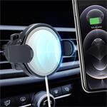 SBS car holderequipped with a hole for a MagSafe charger. The holder attaches to the ventilation grille and is ideal for keeping your mobile phone in sight at all times. The practical clip allows it to be stably attached to any vent, while the adjustable arms are suitable for most mobile phones. The MagSafe power supply unit can be connected to the circular hole for wireless charging of compatible iPhones. Rotate the arms of the holder back and easily mount your smartphone using the magnetic attraction of the power supply unit. This way you can quickly and conveniently unplug it and put it in your pocket or purse when you get out of the car. The holder can rotate 360 °. So you can have your phone set up exactly according to your ideas.