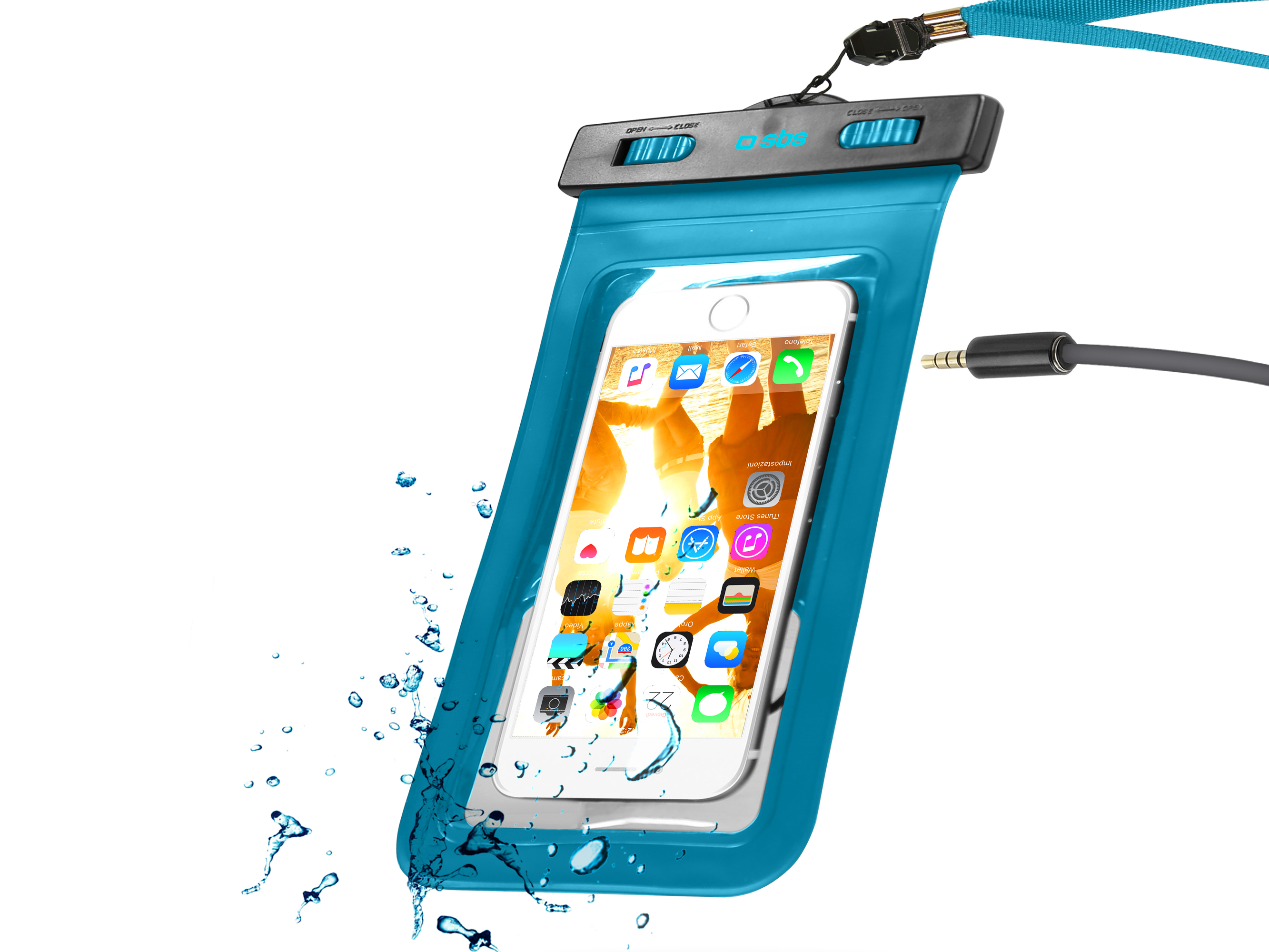 The universal waterproof case of premium brand SBS Mobile is made of durable PVC in combination with silicone, which perfectly protects your equipment from water, sand and dust.The case is very durable and thanks to 2 lockable clamps, it reliably protects the phone from soaking,which is proven by the certification obtained atwaterproof IPX 8.After closing, the smartphone can still be used with a special transparency foil. So you can enjoy the camera or record videoswithout problems. The added 3.5mm jack audio jack on the back makes it possible to connect the headphones to listen to music or to make calls without having to remove the device from the case. Waterproof cases are made in fresh summer colors to help you distinguish yourself from others. The sleeve is also supplied with a practical neckline, which you will appreciate in various outdoor activities.