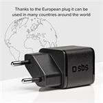 SBS - Cestovný adaptér Mini USB-C, GaN, 30 W, PD, čierna