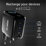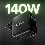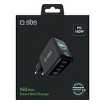 SBS - Cestovný adaptér Smart GaN 3x USB-C/USB-A, PD, 140 W, čierna