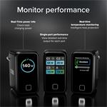 Na rozdiel od bežných adaptérov je tento model vybavený TFT farebným displejom, ktorý poskytuje prehľad o aktuálnom stave nabíjania. Na obrazovke vidíte výkon dodávaný do každého portu, celkové množstvo energie a vnútornú teplotu adaptéra. Displej ponúka aj vizuálne indikácie, napríklad „Excellent“, keď je všetko v poriadku. Ovládanie je jednoduché vďaka interaktívnemu tlačidlu, ktoré umožňuje prepínať informácie a pri dlhšom podržaní otočí displej o 90°, aby bol vždy čitateľný.