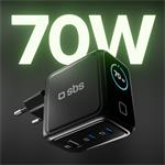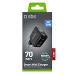 SBS - Cestovný adaptér Smart GaN, PD, 70 W, 2x USB-C/USB-A, čierna