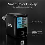 Adaptér disponuje pokročilým digitálnym displejom, ktorý zobrazuje výkon, využité porty a stav nabíjania v reálnom čase. Všetky informácie sú jasné a okamžite dostupné, čo umožňuje jednoduché sledovanie procesu nabíjania. Displej je ovládaný dotykovým tlačidlom – krátkym stlačením prepnete zobrazenie, dlhším podržaním sa displej automaticky otočí o 90°, aby bol vždy čitateľný bez ohľadu na orientáciu adaptéra.