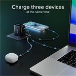 Vďaka dvom USB-C portom a jednému USB-A portu môžete nabíjať až tri zariadenia súčasne. Optimalizované kombinácie výkonu zaručujú, že váš notebook, smartfón, tablet či slúchadlá budú vždy nabíjané efektívne. USB-A port podporuje rýchle nabíjanie s výkonom až 22,5 W, čo je ideálne pre zariadenia, ktoré nepodporujú USB-C.