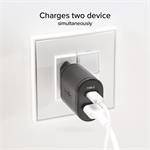 25 W nabíjačka s technológiou Power Delivery vám umožní nabíjať dve zariadenia súčasne. V takom prípade výstup USB-C neaktivuje technológiu Power Delivery, na zabezpečí najrýchlejšie možné nabíjanie zariadenia.