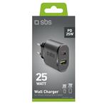 SBS - Cestovný adaptér USB-A AFC/USB-C, PD 25W, čierna
