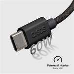 Látkový kábel USB-C značky SBS, s dĺžkou 1,5 m a podporou technológie Power Delivery pri výkone 60 W.