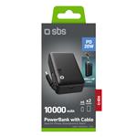 SBS - PowerBank 10000 mAh 20 W PD, s integrovaným káblom 2x USB-C, čierna