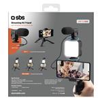 Súprava Live Streaming obsahujúca stojan Tripod so svetlom a mikrofónom spoločnosti SBS, vhodná pre tvorbu živých streamovacích videí.