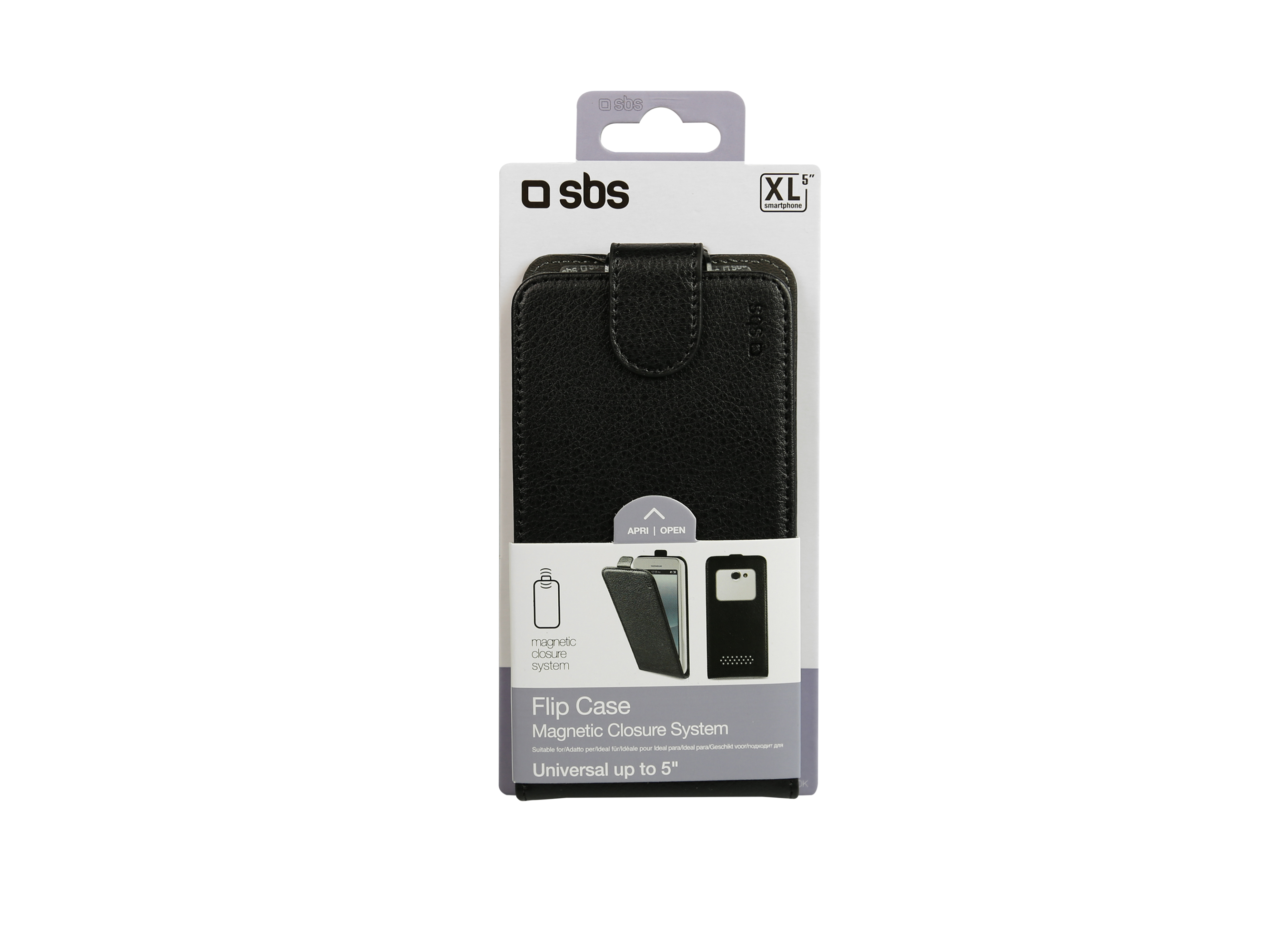 Universal Flip Case-The SBS Mobile PremiumFlip Case is made from quality and durable eco leather with a sophisticated Italian design. Thanks to the grip using special nano-structure self-adhesive surfaces, its installation is very simple and fast. In addition, the case has a large cut-out for the camera, so it fits on most of the devices as well. The ergonomic design of the case allows easy access to all ports and controls of the mobile phone.The inside of the case is made of a soft brushed eco leather for maximum screen protection from scratches, shocks or falls . It closes with a magnetic closurethat protects it easily and reliably from spontaneous opening. The SBS Mobile Book Case is designed for lovers of elegant yet highly functional design.