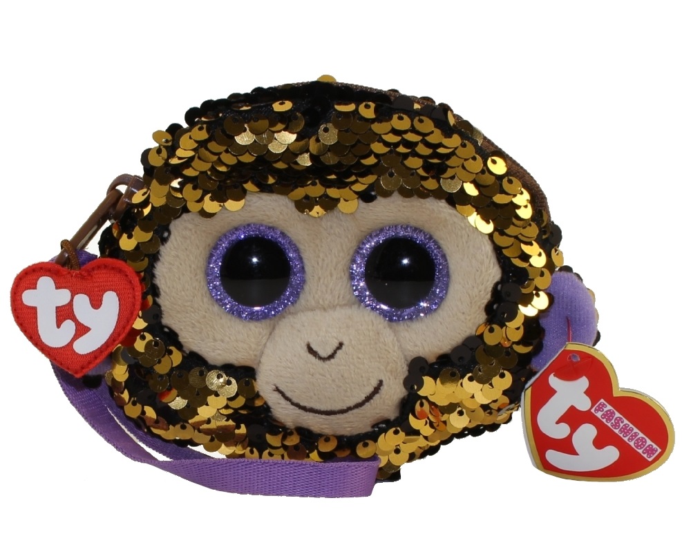 Detská flitrovaná taštička na zápästie opica Coconut z edície TY Fashion Sequins americkej značky TY. Taštička je veľmi príjemný na dotyk vďaka použitým materiálom najvyššej kvality. Každé zvieratko má svoje vlastné meno, dátum narodenia a krátku básničku, ktorú môžete nájsť na štítku. Taška je ideálna pre uchovávanie mincí alebo iných malých cenností. Disponuje uzatváraním na horný zips a farebnou vnútornou podšívkou.